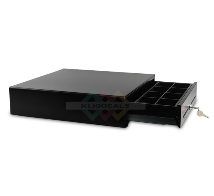 The RetSol RSK410 Heavy Duty Cash Drawer boasts a sturdy build quality, ensuring exceptional durability and reliability in demanding business environments. Constructed with high-quality materials and reinforced metal components, this cash drawer is built to withstand daily wear and tear, providing long-lasting performance. The solid construction not only withstands the rigors of continuous use but also safeguards the valuable contents stored inside. With its robust build, the RSK410 Cash Drawer offers peace of mind, knowing that it can endure the demands of a busy point-of-sale environment, making it an ideal choice for businesses seeking a reliable and resilient cash management solution.